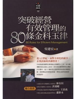 有效管理的80條金科玉律 / 有效管理的80條金科玉律吳建宏著 - 初版 - 台北市 : 宇河文化, 2004.07[民93] - 280面 : 圖 ; 21公分 - 知識精英 2.
